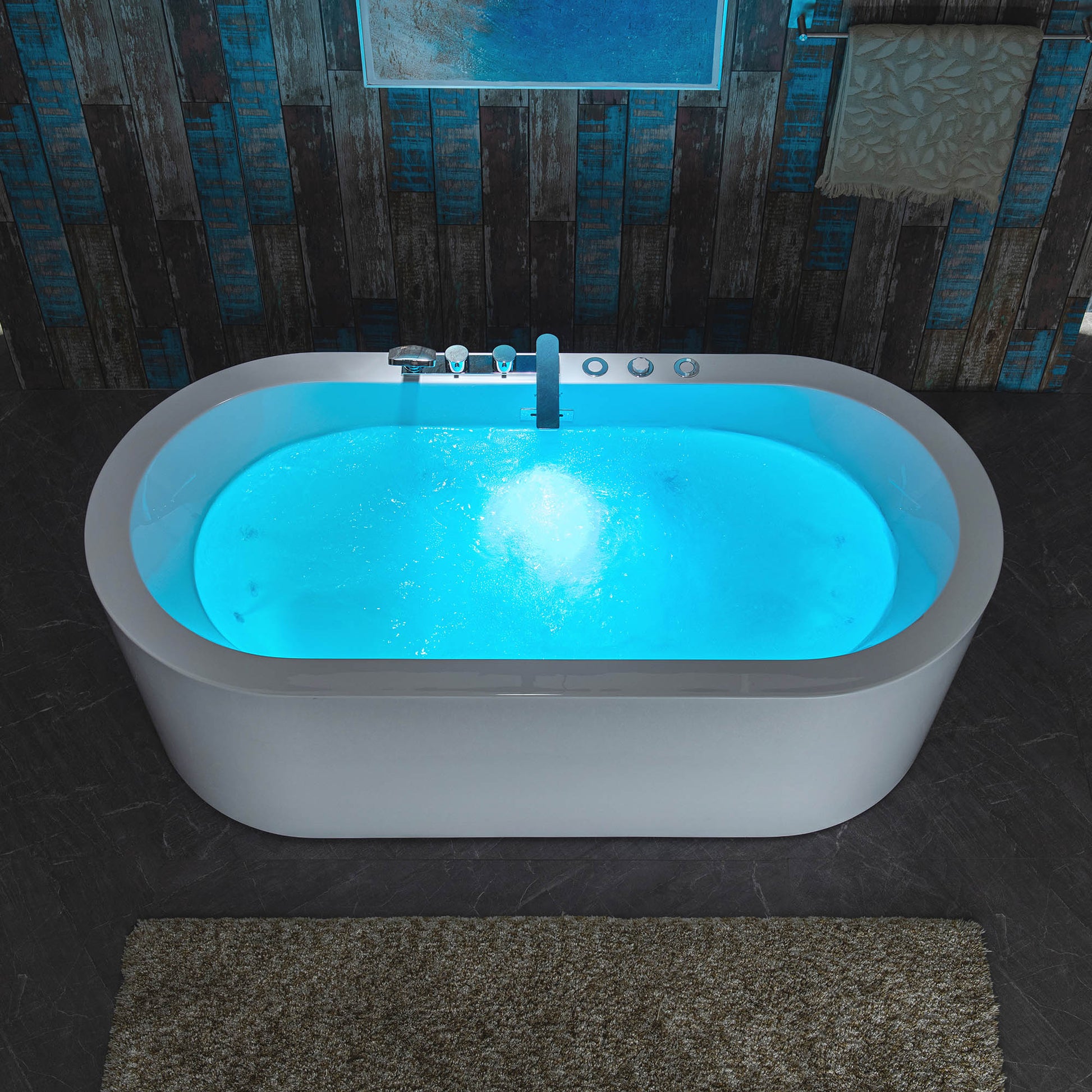 Enjoy therapeutic relief delivered by the dual massage system, which features both invigorating whirlpool jets and a gentle air bubble system. The integrated inline heater maintains the water temperature indefinitely, ensuring your soak remains warm and soothing. Despite its compact 66-1/2" length, the seamless freestanding oval design offers deep immersion. This Heated Tub with Tub Filler is crafted from high-gloss acrylic with built-in ambient lighting, providing a luxurious, therapeutic, and complete solution for your modern bathroom. Invest in this convenient, top-tier spa experience and order today.