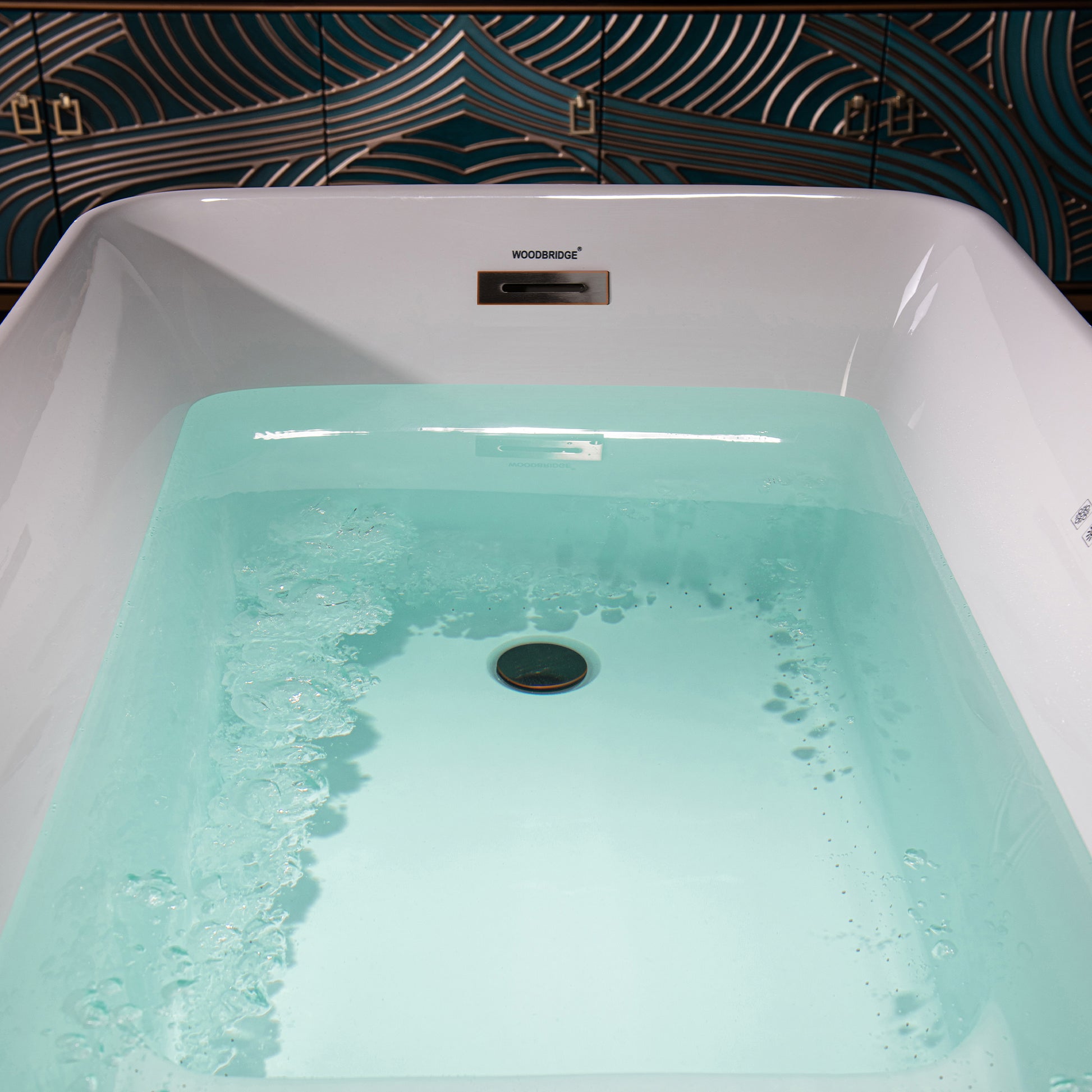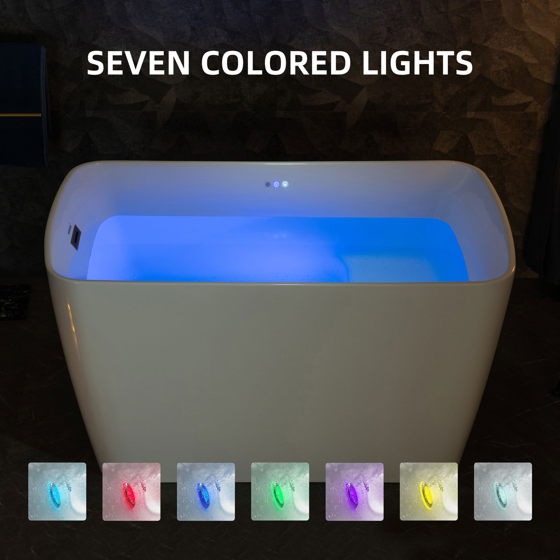 WOODBRIDGE B0170 48" Acrylic Freestanding Rectangular Air Bath Compact Bathtub with Integrated Seat
