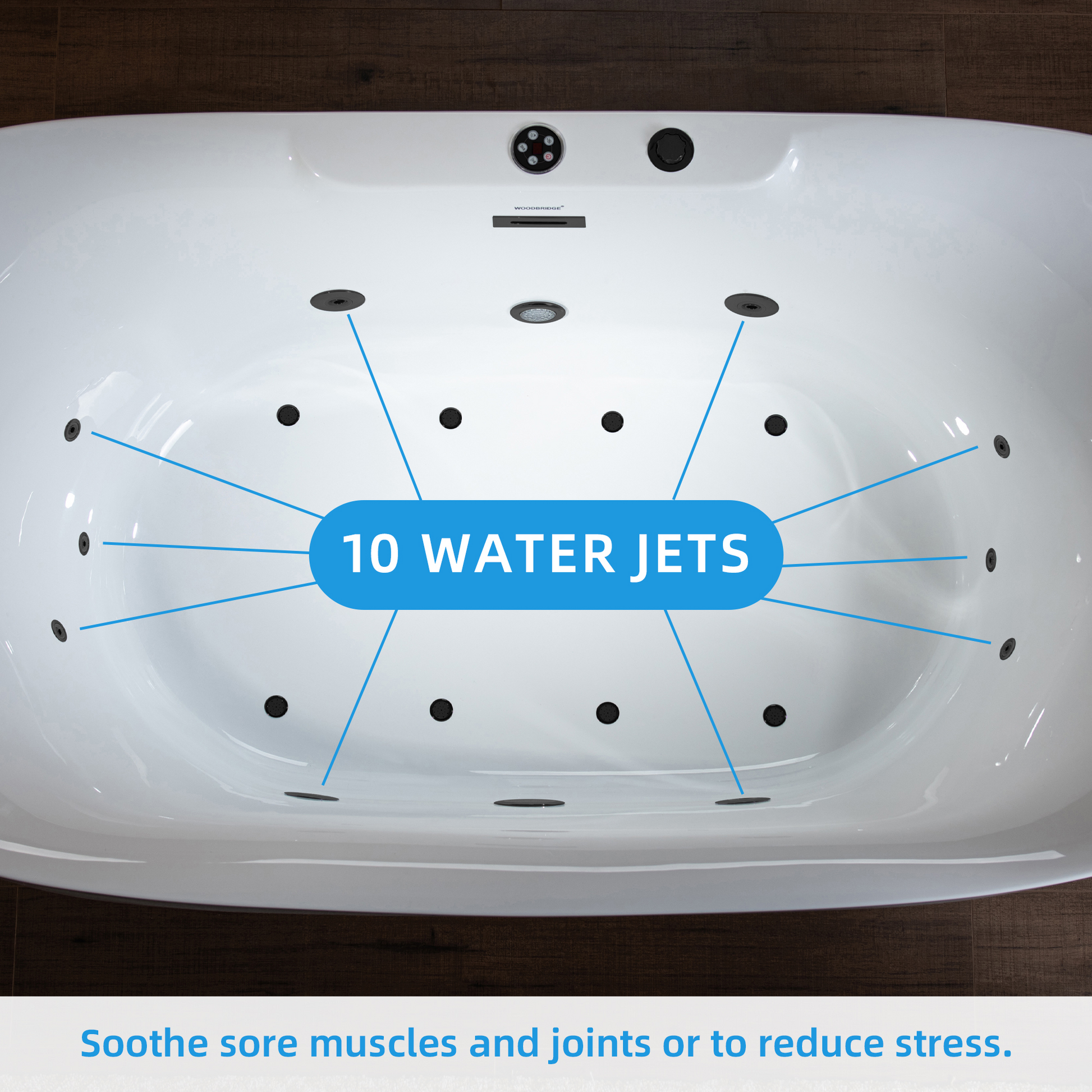 Whirlpool & Air Jet System: Combines 6 adjustable water jets and 10 air bubble jets for a powerful yet gentle hydrotherapy massage. Matte black stainless steel jets deliver a sleek, modern look.