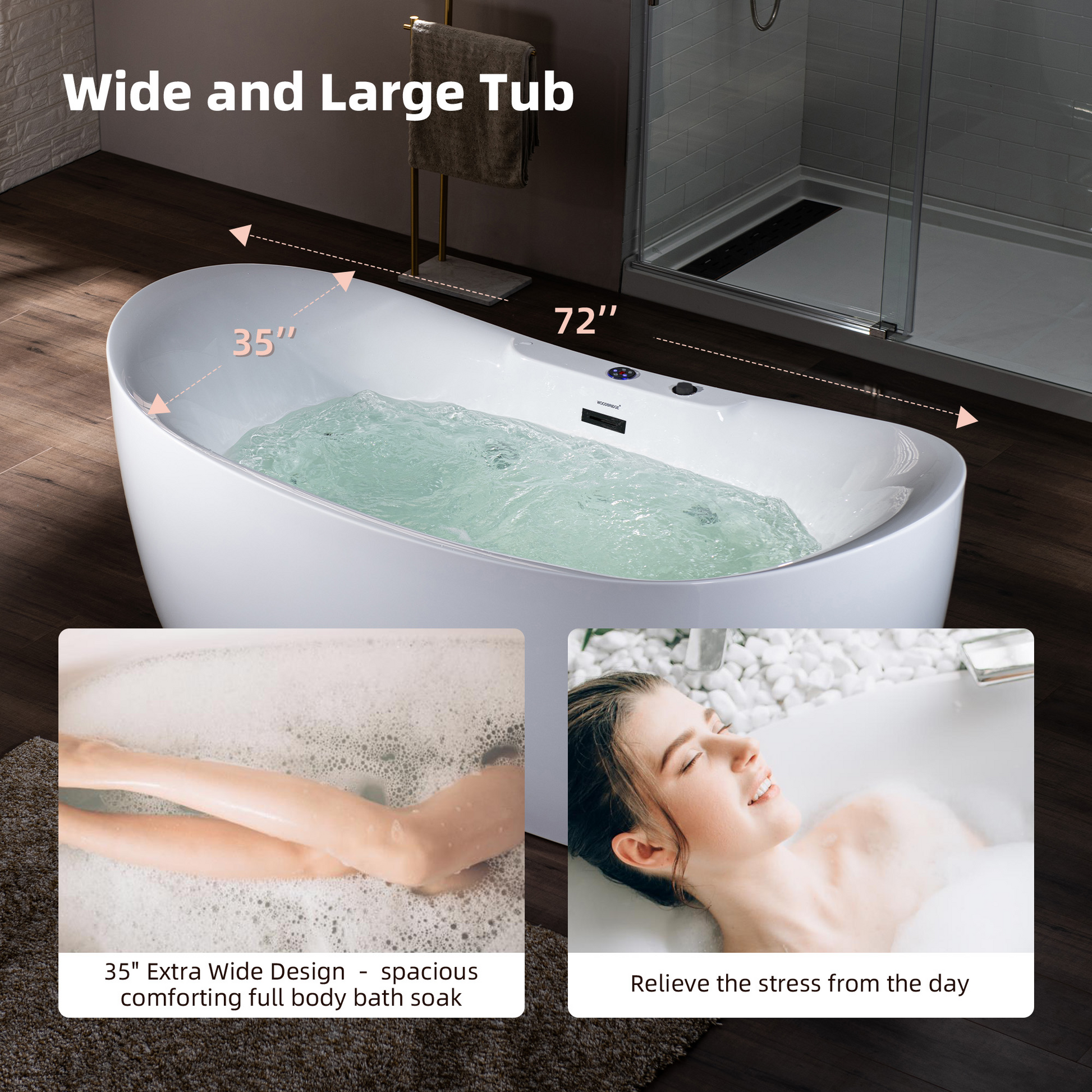 WOODBRIDGE BM400 72" x 35-3/8" Whirlpool Water Jetted and Air Bubble Freestanding Heated Soaking Combination Bathtub with LED Control Panel, Matte Black Finish Trim and Drain Kit